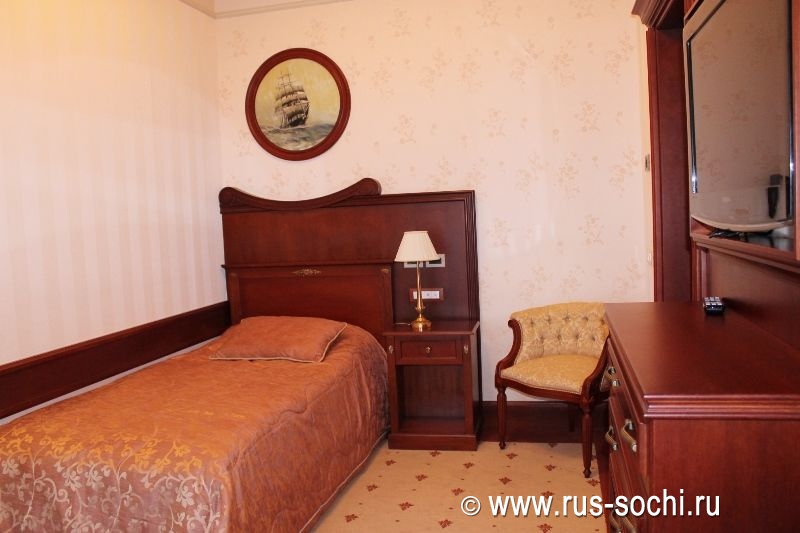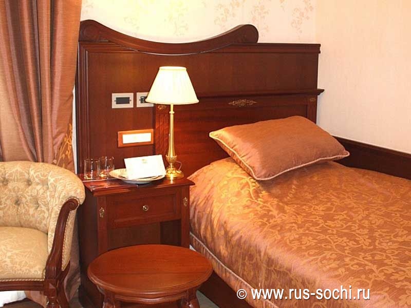 Односпальная кровать с ортопедическим матрасом, комфортная мебель, теплые оттенки портьер в венецианском стиле - все это смогут оценить желающие отдохнуть от суеты, шума и безумного темпа современной жизни.