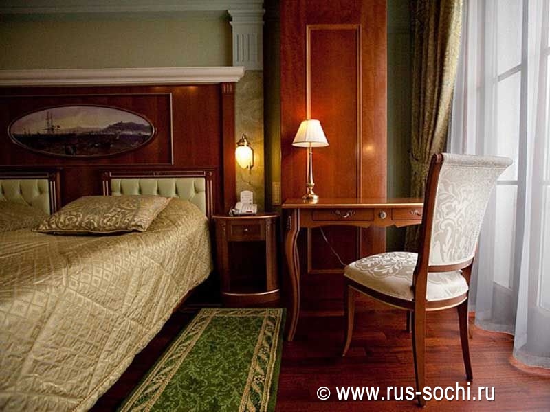 Две односпальные кровати, оснащенные ортопедическими матрасами, итальянская мебель, тридцатидвухдюймовая плазменная панель и изящные элементы декора в венецианском стиле создают особую атмосферу уединения и комфорта, где ничто не помешает погрузиться в деловые бумаги или просто отдохнуть от городской суеты в удобном кресле.