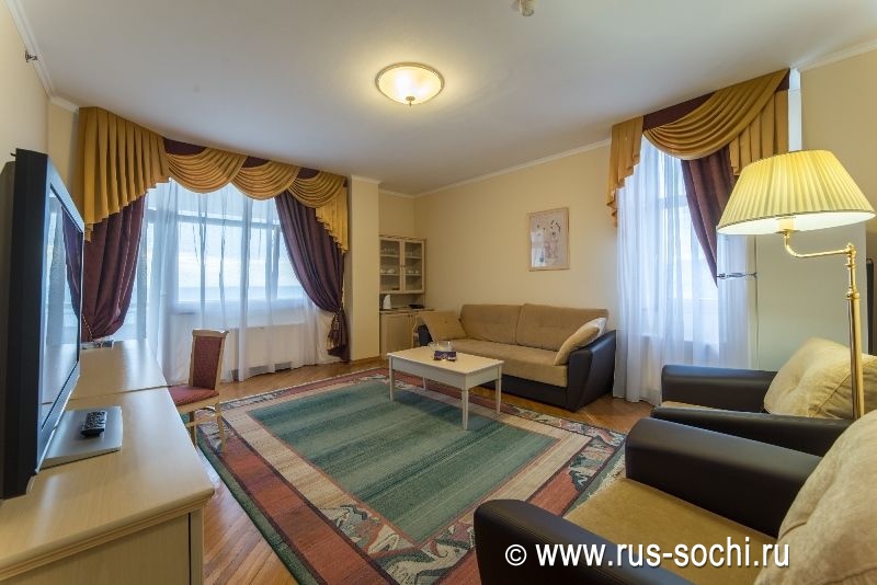 Номер состоит из прихожей, гостиной, спальни и ванной комнаты.