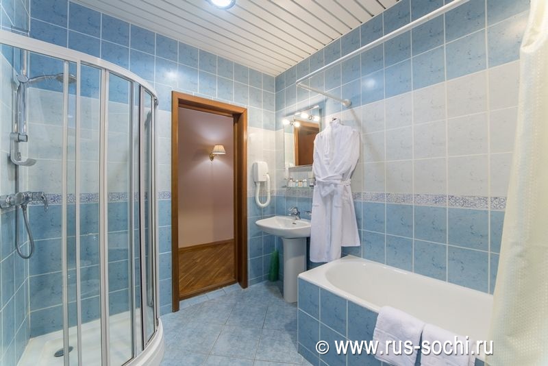 Ванная комната оборудована современной сантехникой, в т.ч. биде, душевой кабиной, феном для сушки волос.