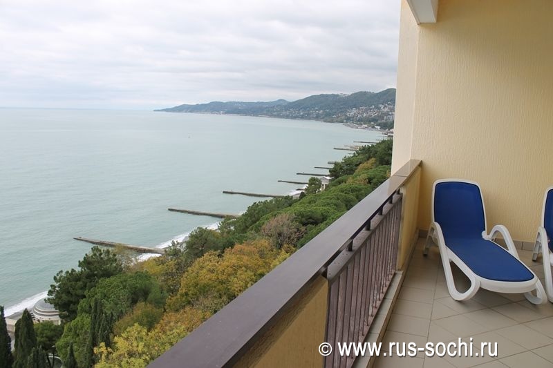 Во всех номерах имеются террасы площадью 25 кв.м. На террасе - кофейный столик и два плетеных кресла, шезлонги. С террасы открывается прекрасный вид на море.